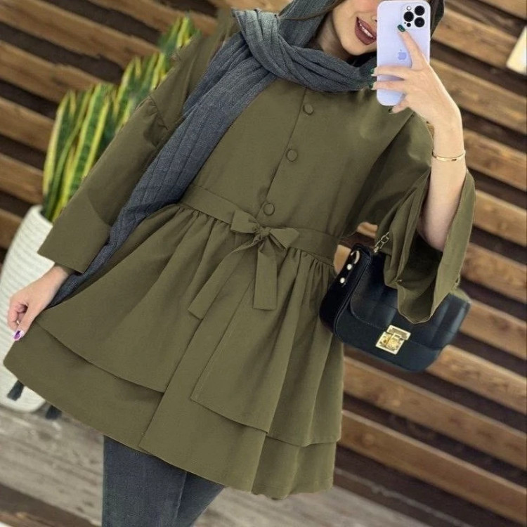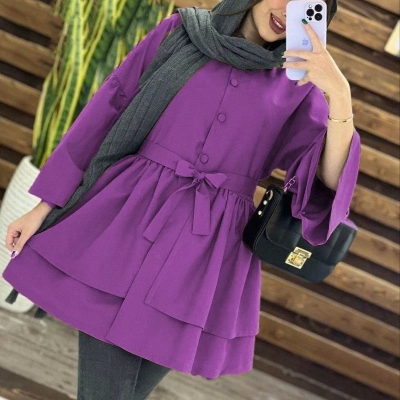 جنس مانتو تترون است ودارای رنگبندی است و قدمانتو 80.دارای رنگبندی میباشد