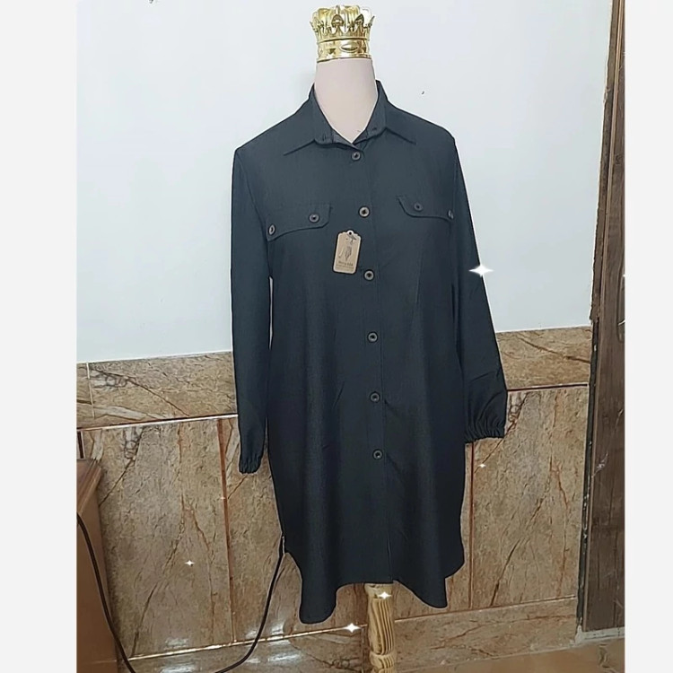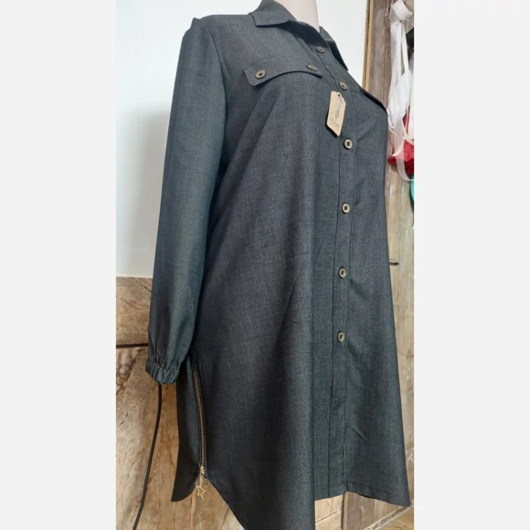 مانتو لی دوجیب روی سینه در رنگهای زغالی وابی تیره وابی روشن. قابل سفارش براس سایز 36تا58