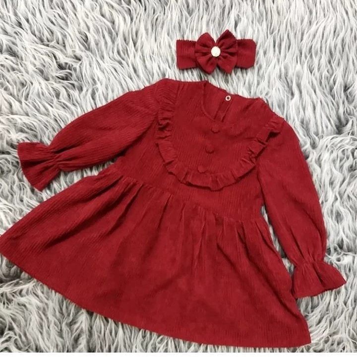 پیراهن دخترانه عروسکی مخمل کبریتی