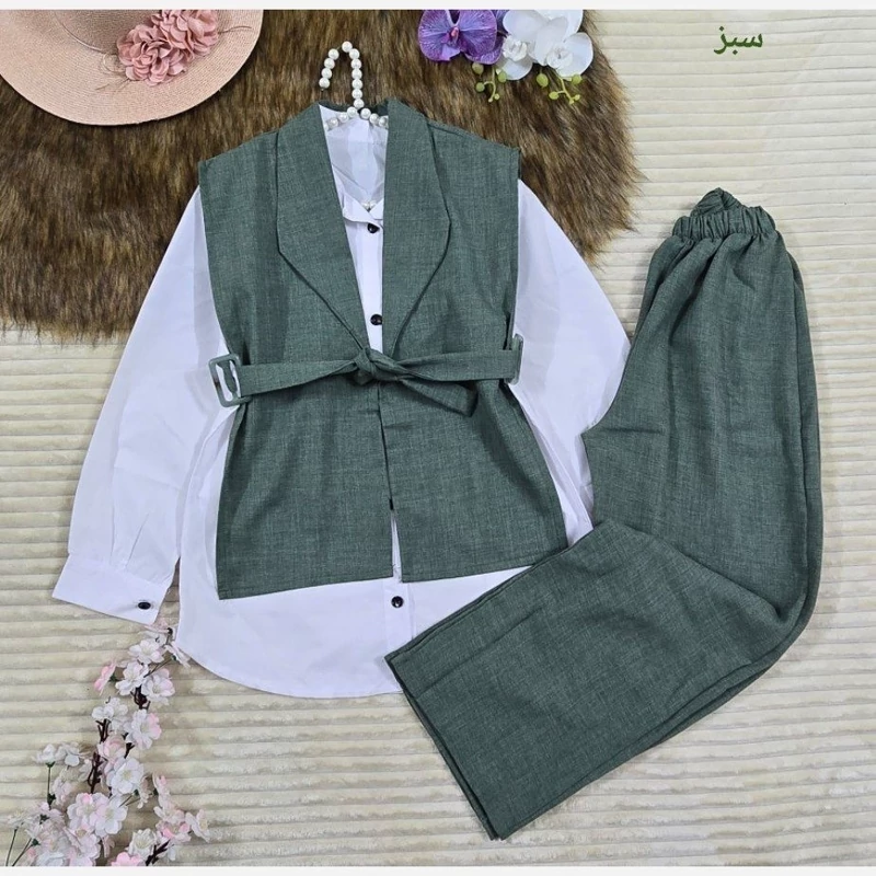 ست سه تکه هم قابل سفارش است که هزینه شومیز سوال شود