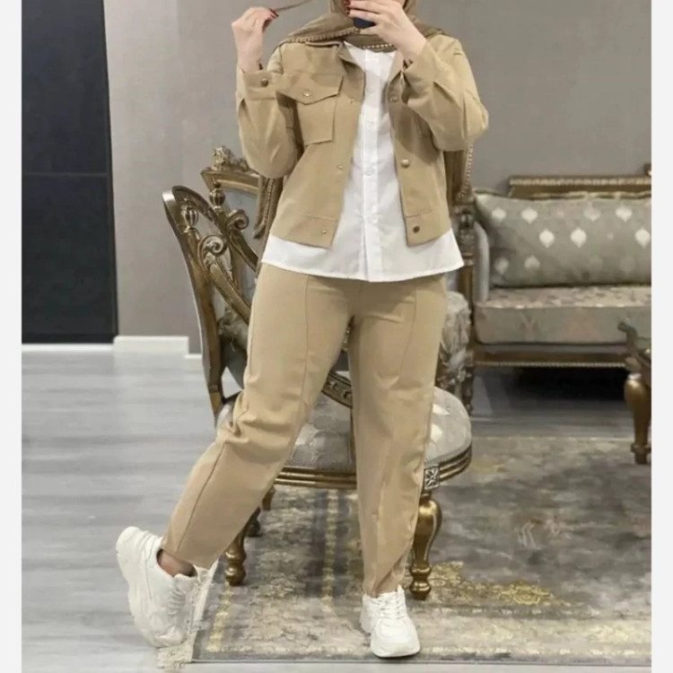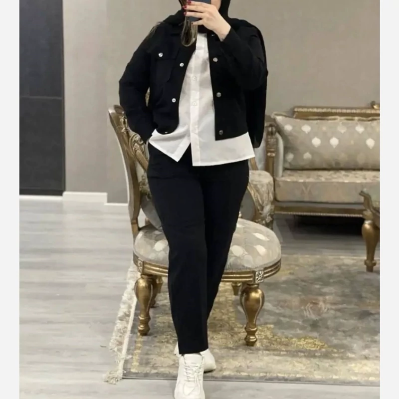 سه تکه نیل مناسب ترندپوشان وشیکپوشان عزیز هست جنس کت وشلوار مازاراتی وارداتی هست شومیز تترون رنگ ب دلخواه مشتری قابل سفارش از36تا58 قیمت اگهی تاسایز 44است سایزهای بالاتر باتفاوت قیمت قابل سفارش است قدشلوار 100 قد کت50